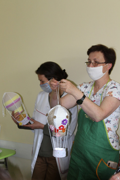 Родители были настолько впечатлены и обрадованы, что без конца благодарили всех! А мама Миши Матюшенко, Наташа, сделала врачам необычный подарок, сделанный своими руками – светильники в форме воздушных шаров! Вот сколько необычностей, приятностей и улыбок! И наказ родителей на будущее – продолжайте делать вкусные четверги.